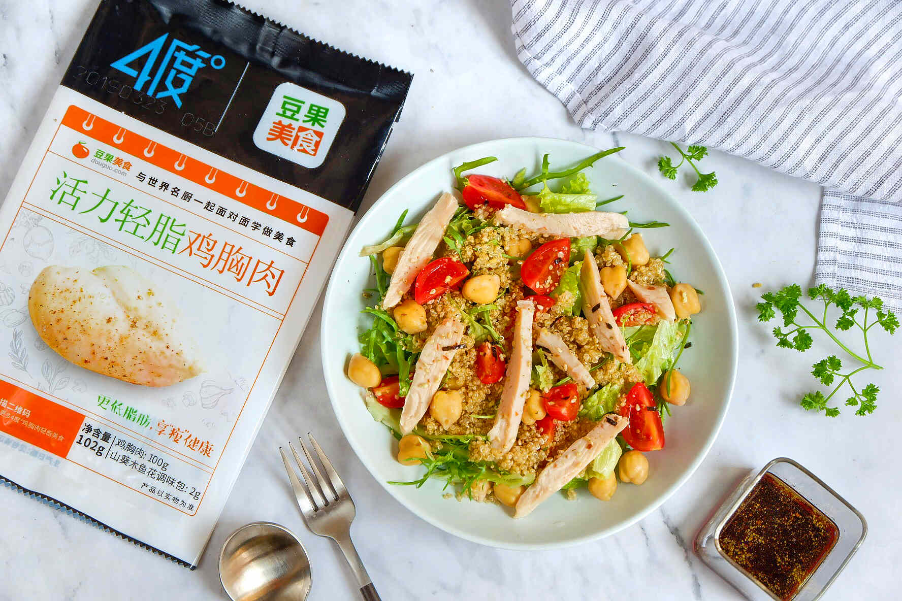 联名款产品的包装设计为凸显“分享美食、分享健康”理念,特意添加了豆果平台4度°专页二维码,消费者不仅可以扫码了解由豆果提供的4度°达人菜谱,还可以与其他消费者分享交流有关4度°的多样搭配方法及健康膳食经验。目前,4度°豆果联名款活力轻脂鸡胸肉已于4月22日在豆果平台开卖。